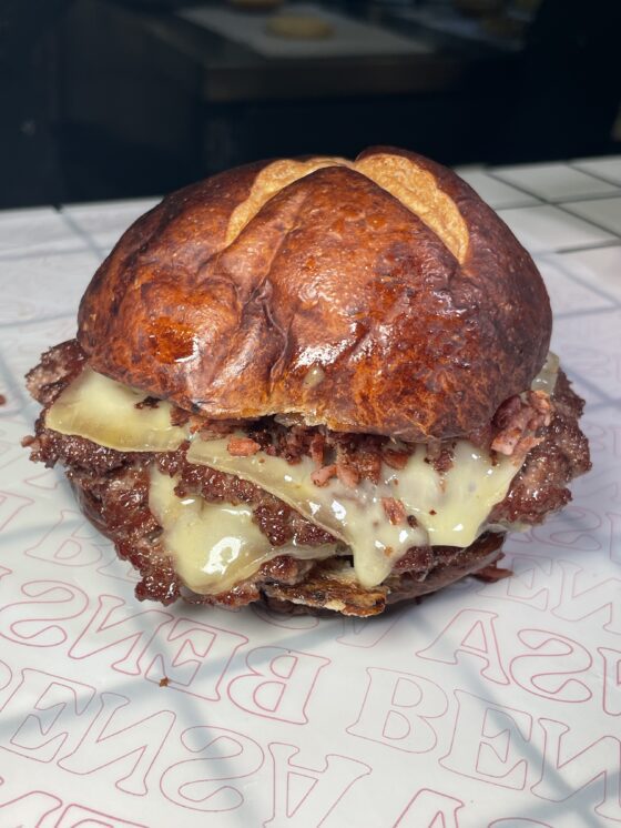 Su propuesta, La Twin Burger, parte de la técnica smash —esa presión sobre la plancha que carameliza la carne y concentra sabor— pero la lleva a un terreno más sofisticado.